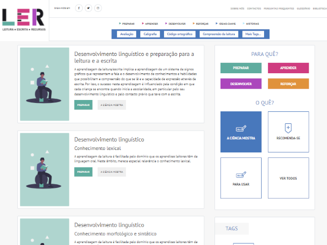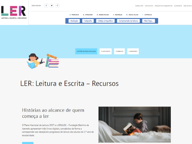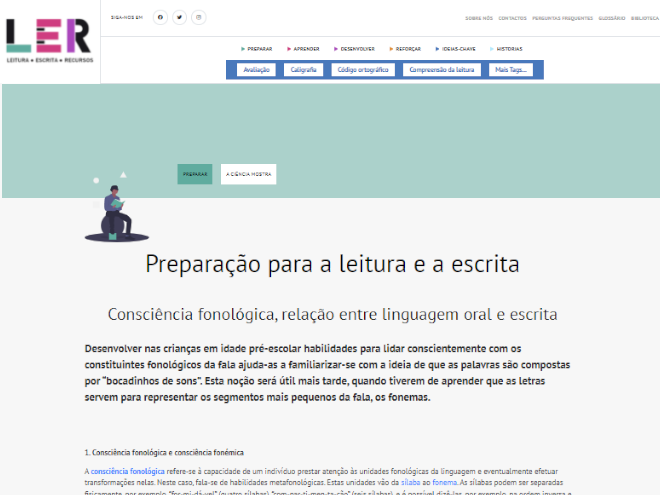Na plataforma LER encontra-se um conjunto de conteúdos diversos, produzidos por uma equipa de reputados investigadores nacionais que sistematizam de forma sintética as principais vertentes do conhecimento acerca da aprendizagem da leitura e da escrita, dirigindo-se em particular aos docentes da Educação Pré-escolar e do 1º Ciclo. Aqui abordam-se os domínios mais relevantes dos processos de aprendizagem da leitura e da escrita e os fatores que os condicionam, permitindo aos docentes a compreensão de muitas das causas de problemas que surgem nas salas de aula, convidando-os a estruturarem um ensino fundamentado, eficaz e inclusivo.